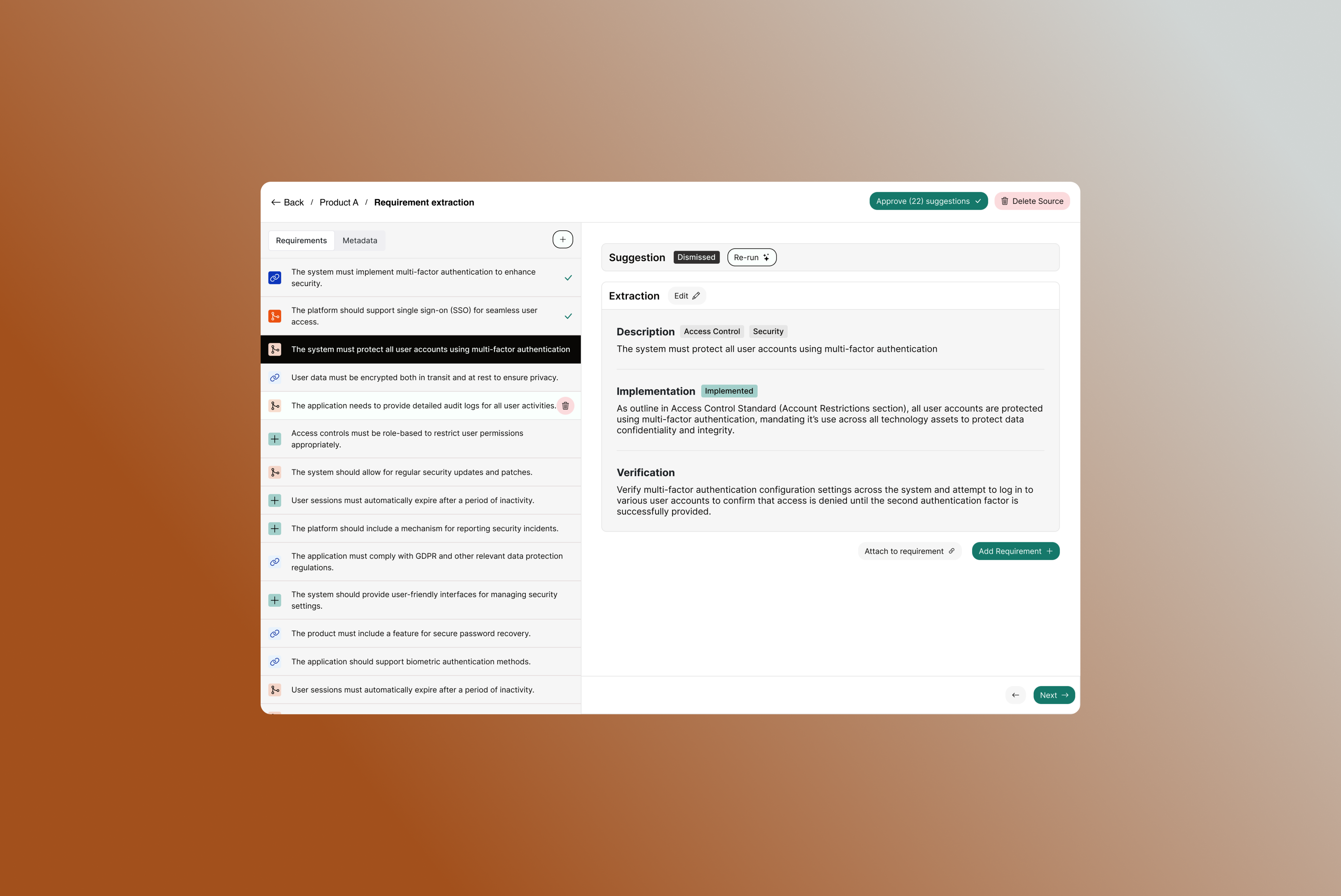 A company started with some friends to solve a simple problem within the technology industry. Our open-source platform extracts requirements from your documents, manages them centrally, and helps you process questionnaires with AI-assisted answers.